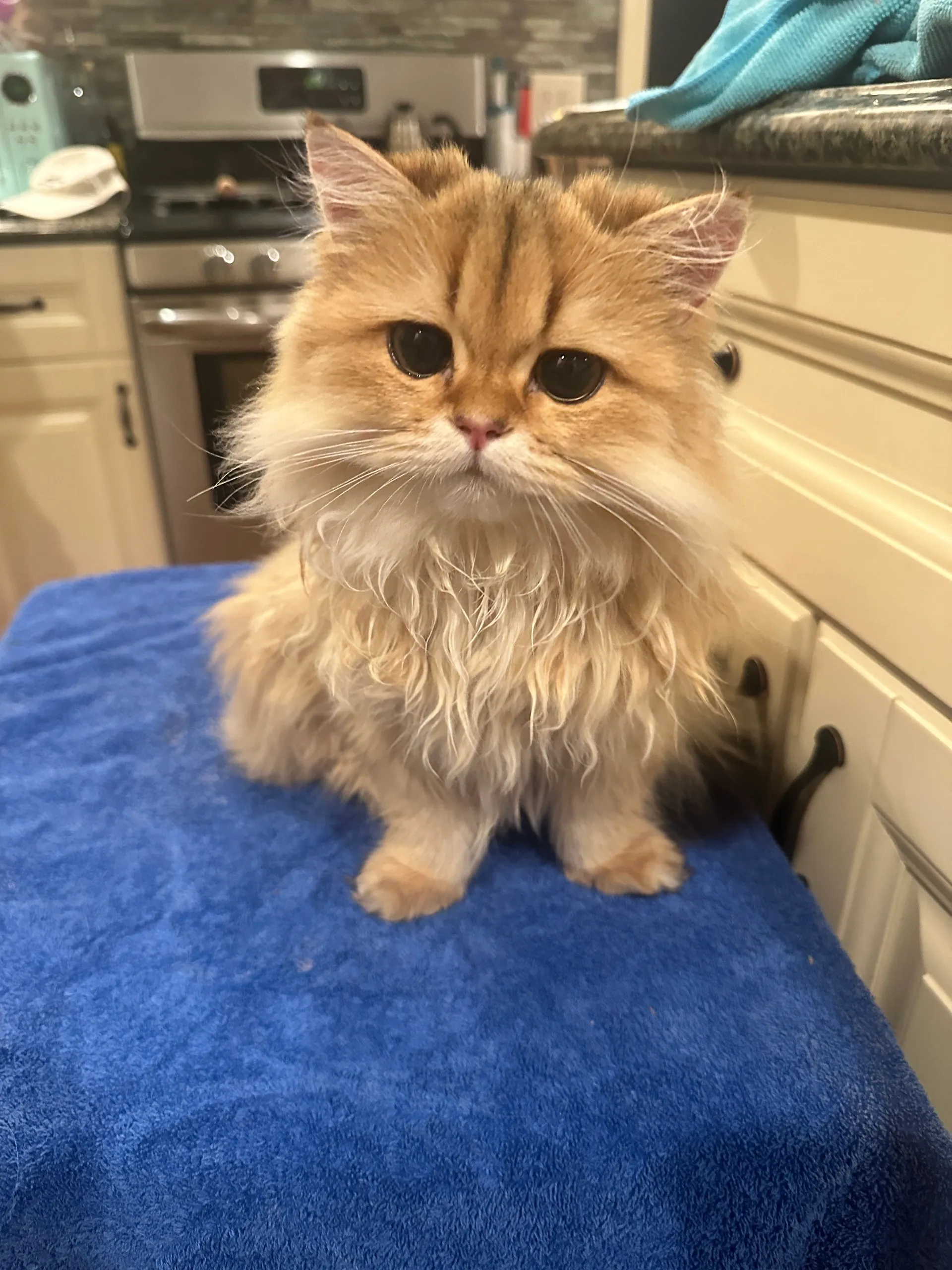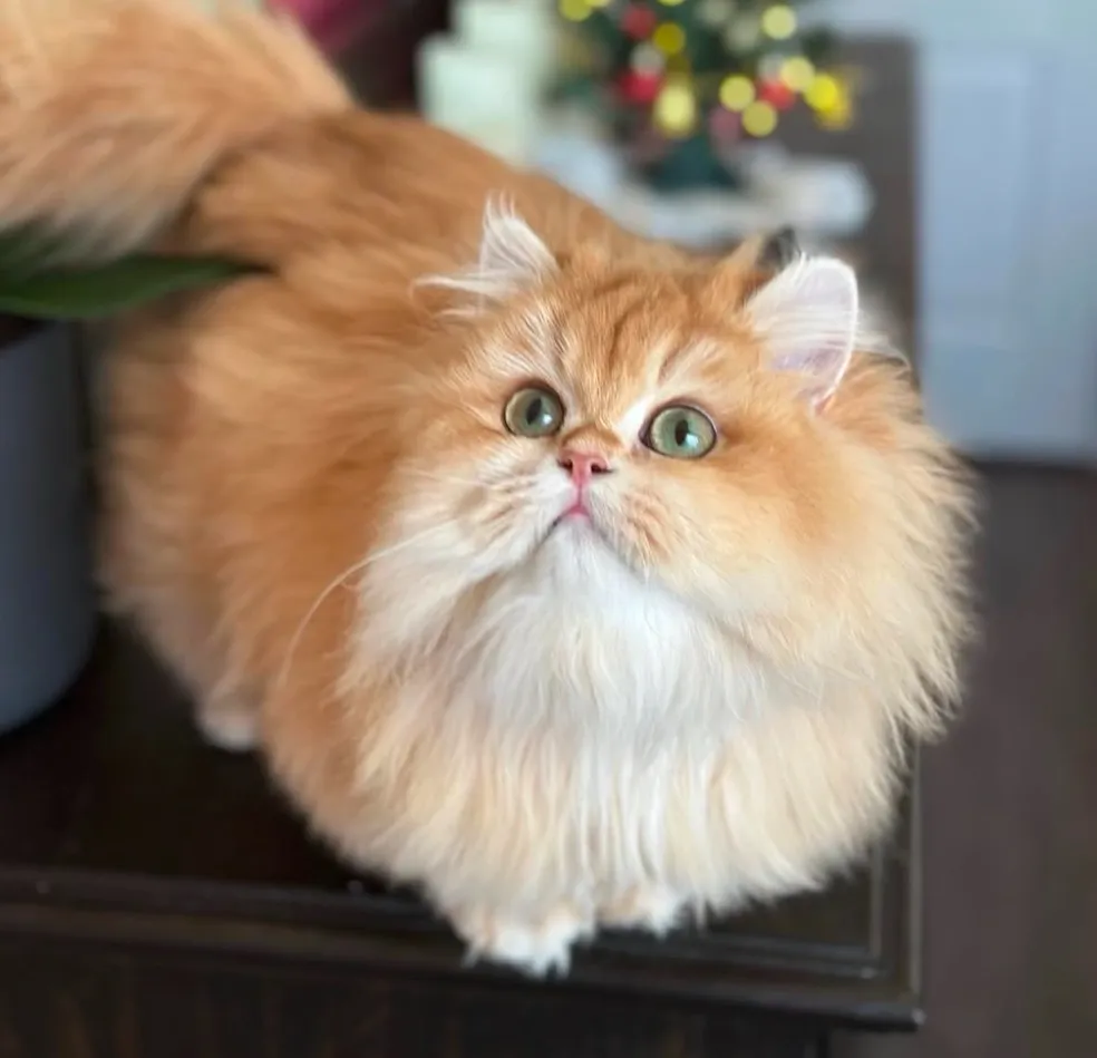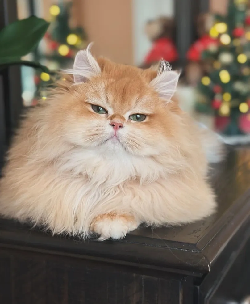 Clementine is my adorable chocolate golden shelled British Longhair (BY12), and she’s truly one of a kind. She’s by far the chubbiest British I have, built like a little brick but as soft as a cloud. She weighs 10lbs. Her round face and tiny meows make her look like a living teddy bear, but beyond her looks, she’s a really gentle sweetheart. Clementine is incredibly affectionate, always looking for pets and loving every second of being groomed by me. She’s also quite the talker, especially when she first sees me, she has the cutest little conversations in her soft, chirpy voice. And the biscuit-making? Nonstop.