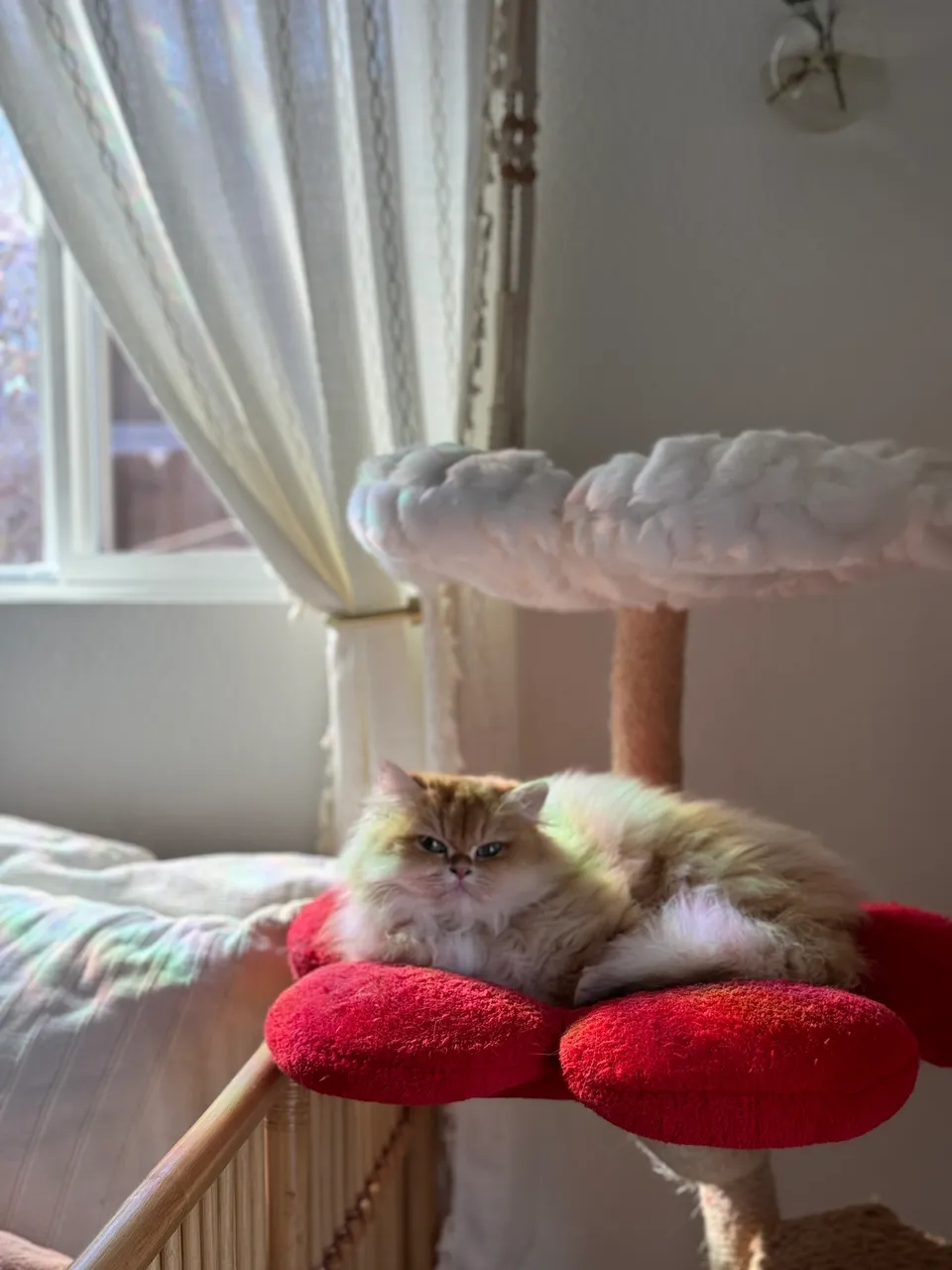 She absolutely loves all kinds of toys, and it’s hilarious to watch her chase, pounce, and act like she’s the fiercest little hunter. But once the toys are put away, she’s back to her mellow self. While she’s not overly cuddly, she’s still incredibly affectionate, always rubbing against my legs, making biscuits, and staying close by. She’s the perfect mix of playful, sweet, and independent, and I just adore everything about her.
