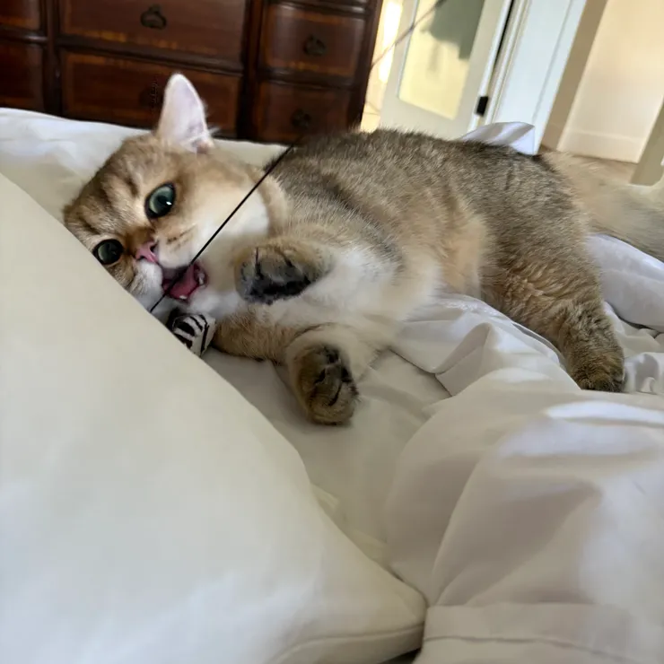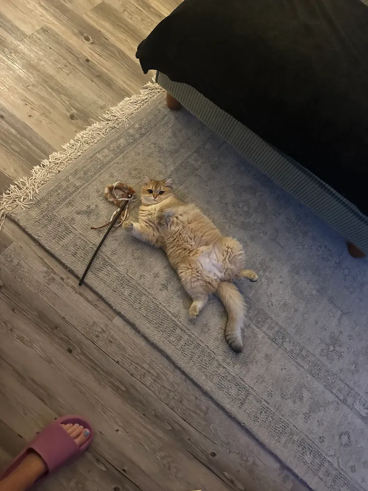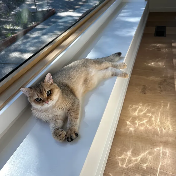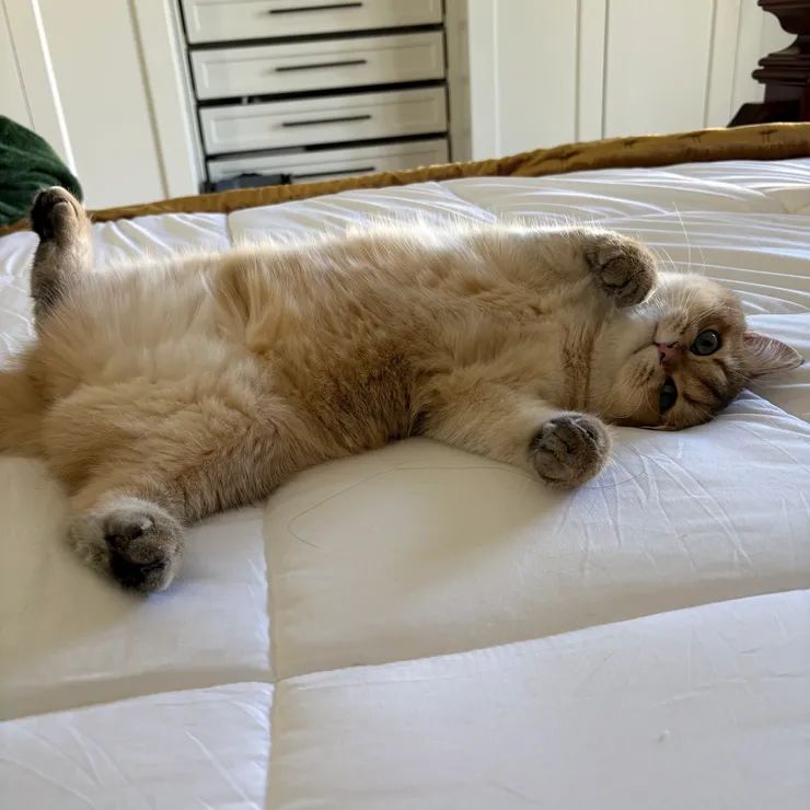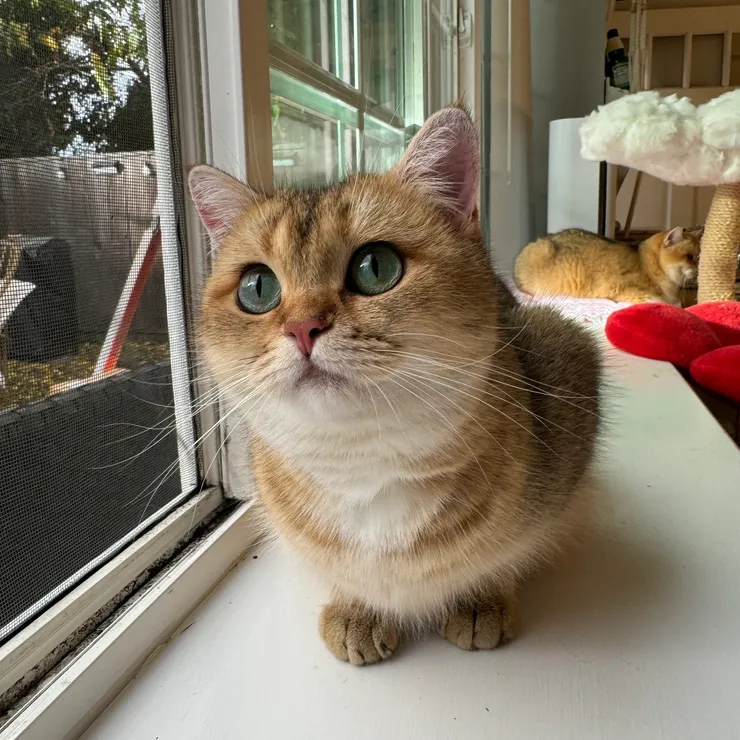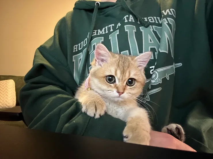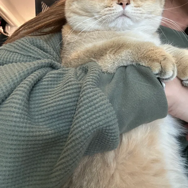 She’s always very sweet when people visit. She lets you hold her and cuddle with her for hours. She’s been a wonderful addition to my family. She’s calm, snuggly, easy going and so in love with her! She is the first one to great guests and let anyone hold her in their arms.