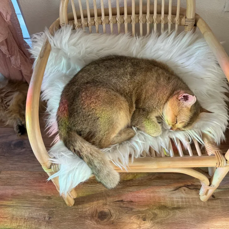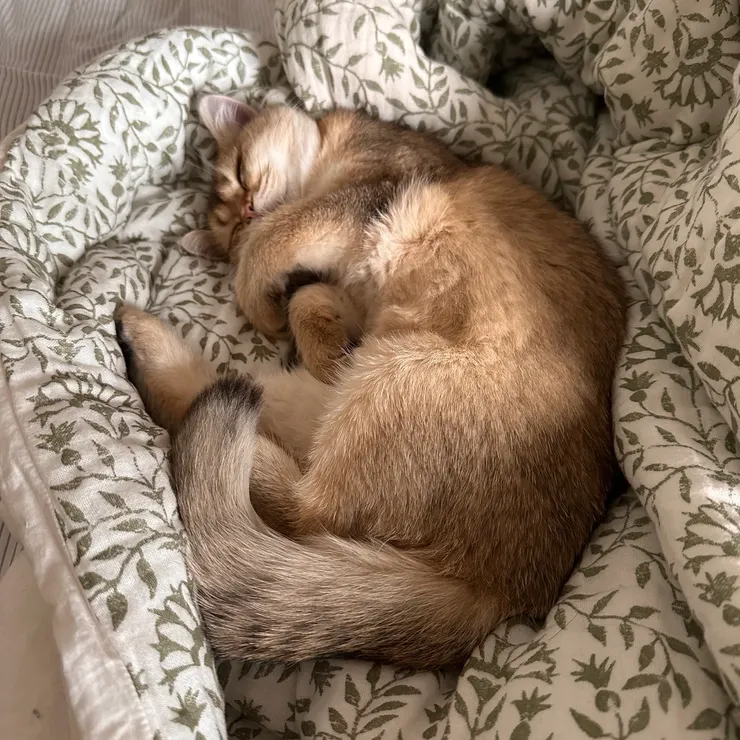 Poppy’s kitten girls are affectionate little snuggle bugs, especially in the mornings when they wake up eager for attention. They strike a perfect balance between loving their independence and being incredibly social—they’ll be the first to greet you when you get home with happy tail wags and purring as they weave around your legs, always excited to see everyone.
